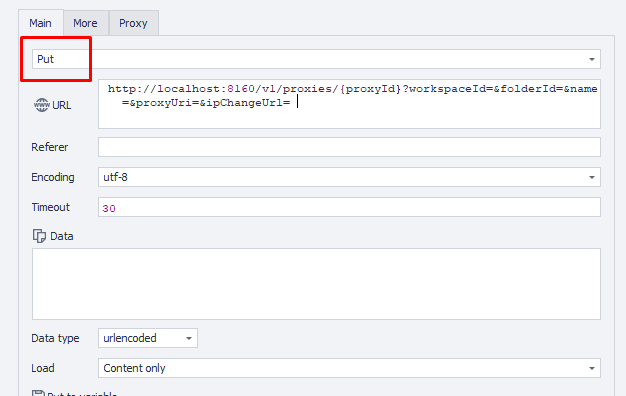 ID прокси, который нужно отредактировать, необходимо указать в фигурных скобках { } в пути URL.